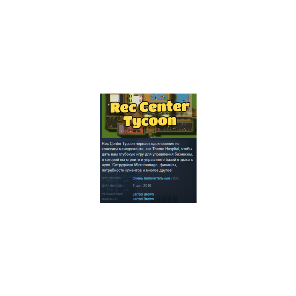 Rec Center Tycoon draws inspiration from the simulation-management classics like Theme Hospital as well as modern classics like Prison Architect to give you a deep, challenging business management game where you build and run a recreation center from the ground up.