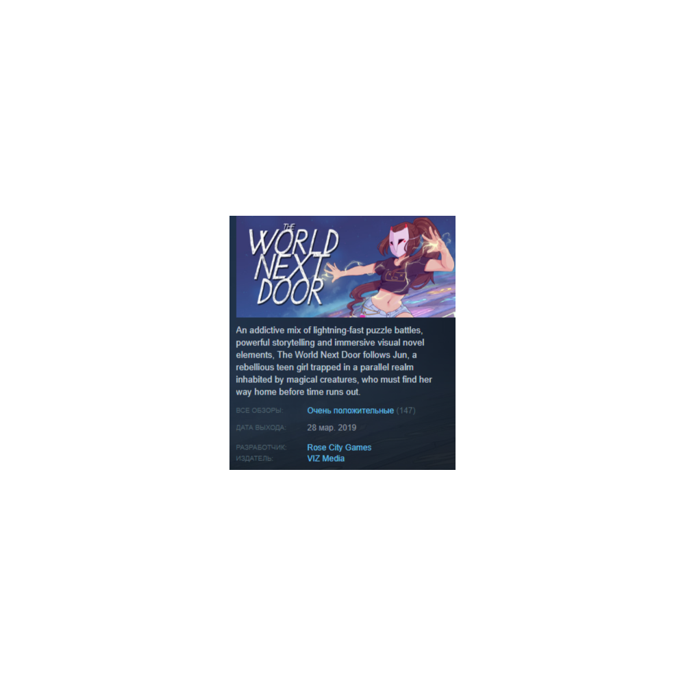 In The World Next Door, players will find an addictive mix of immersive visual novel elements, powerful storytelling and lightning-fast puzzle battles. Learn for yourself why The World Next Door was nominated for the 2019 SXSW Gamer’s Voice Award, selected for the 2019 Indie Mega Booth PAX East Showcase and awarded numerous accolades/nominations for Best Action-Adventure Game.