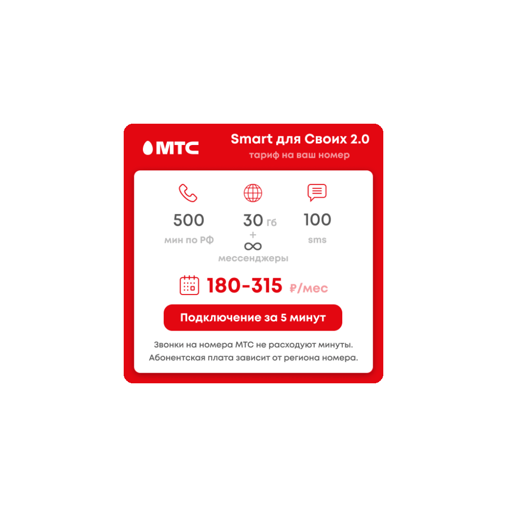🔹Безлимитные звонки на номера МТС всей РФ (не расходуют пакет минут)