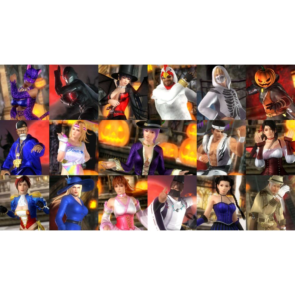 В этот набор вошли костюмы на Хэллоуин 2017 для всех персонажей DOA5LR