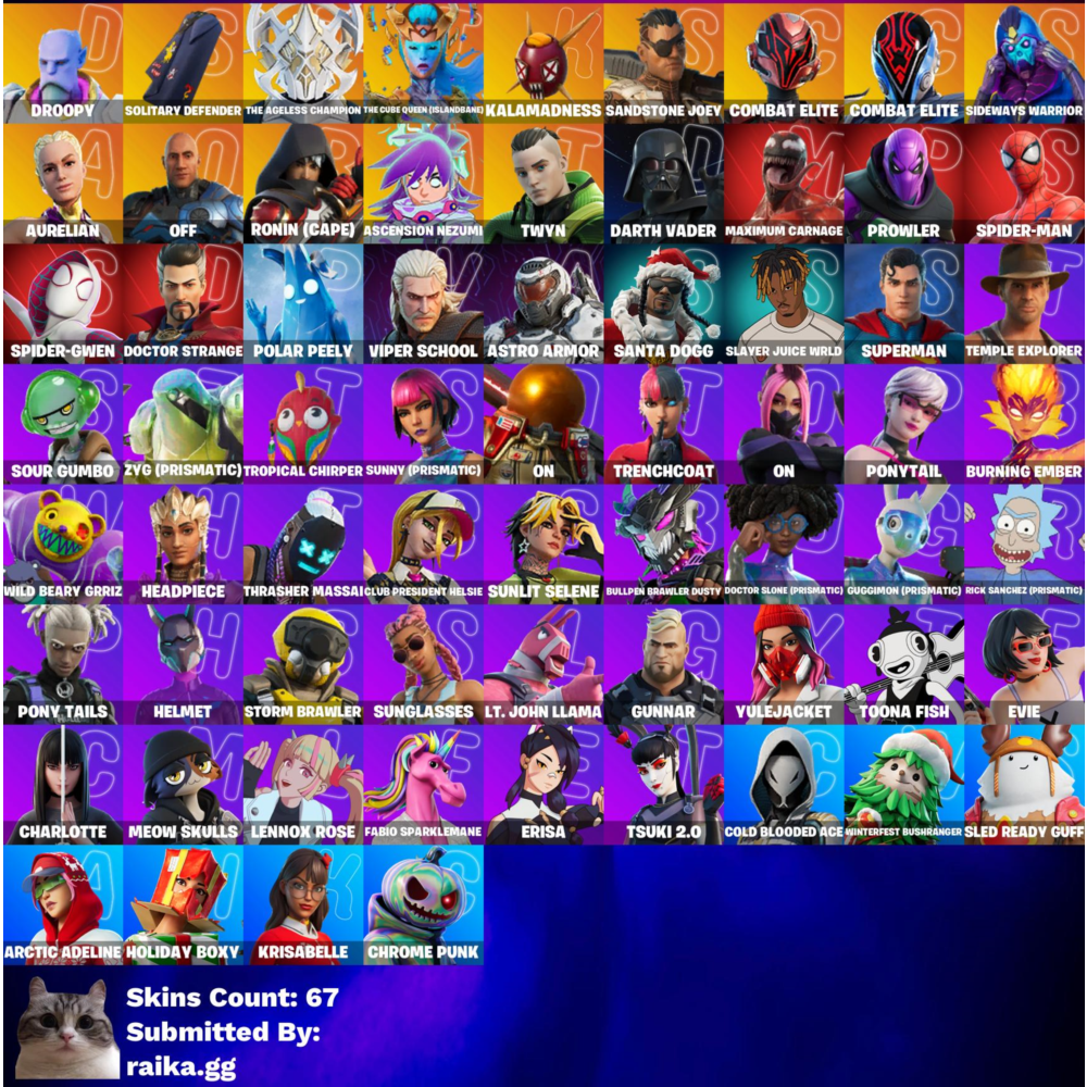 [ПК] 67 скинов | Друпи | Одинокий защитник | Вечный чемпион | Королева кубов (Остров Погибели) | Каламаднесс | Джоуи из песчаника | Элита боевого оружия | 1300 ВБ