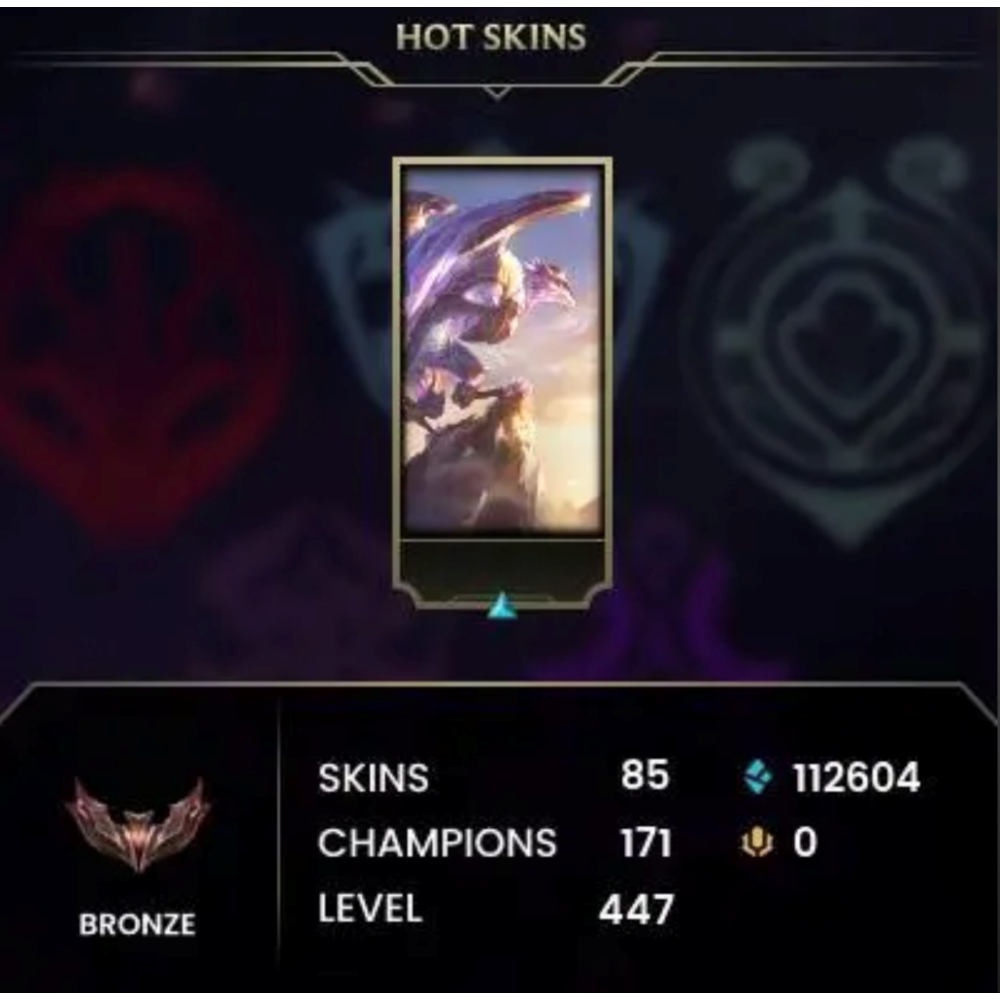 💎 Поднимите свой игровой опыт на новый уровень с этим премиум-аккаунтом League of Legends, включающим 447-й уровень и ранговый статус «Бронза III». В него входят 171 чемпион, 112 604 единицы Синей эссенции и 1 редкий облик. Вы получите полный доступ к аккаунту Riot Games и привязанной к нему электронной почте, а также возможность привязать свой адрес электронной почты и номер телефона. Настройте параметры аккаунта в соответствии со своим уникальным стилем игры.