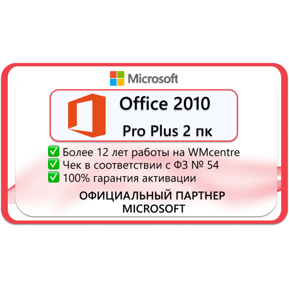 Microsoft office 2010 pro plus 2 пк Microsoft Партнёр
