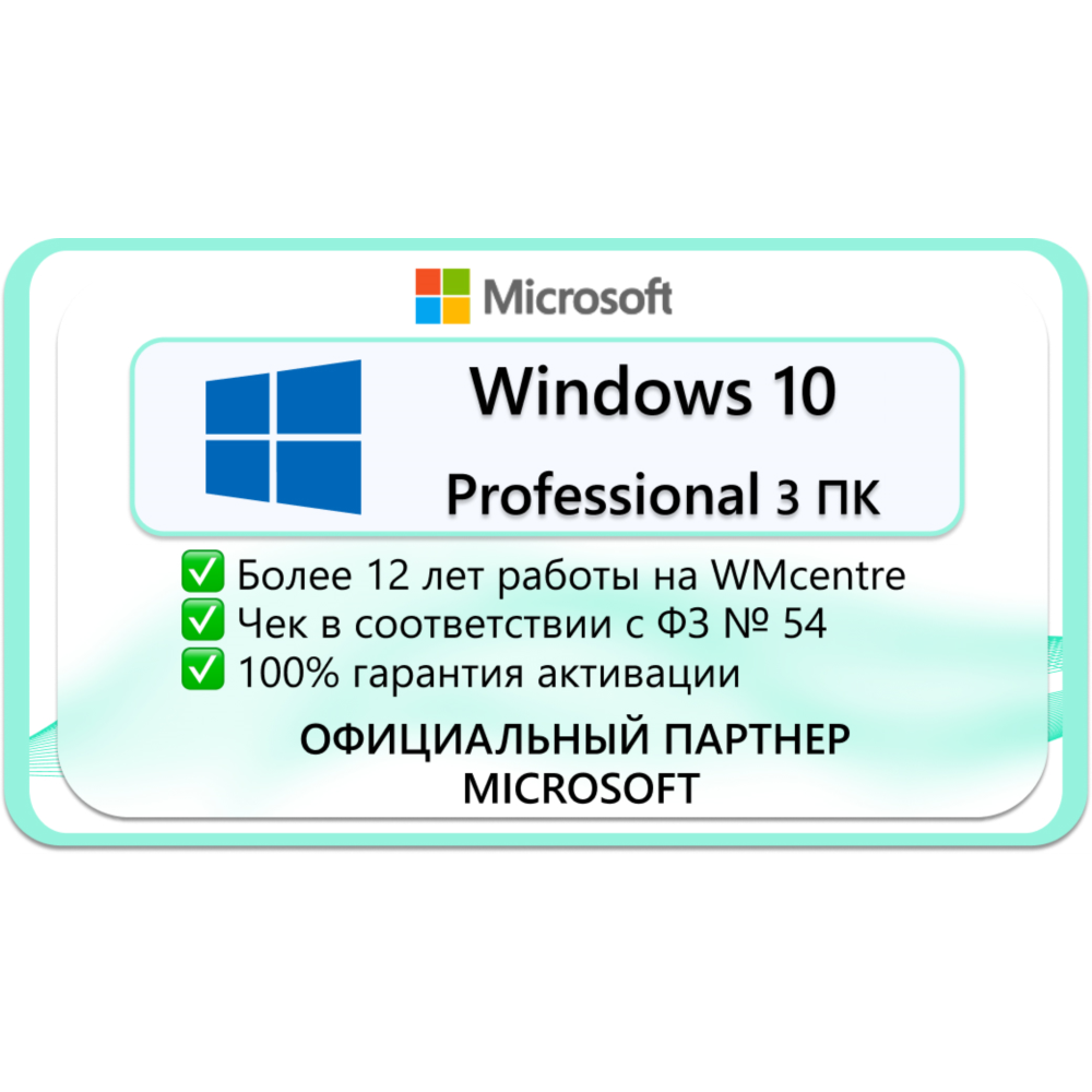 WINDOWS 10 PRO 32/64 bit 3 ПК Microsoft Партнёр