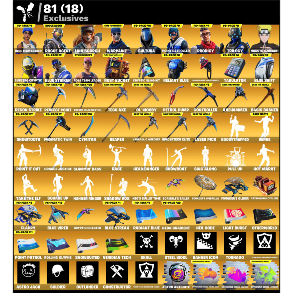 ✅ Этот аккаунт включает 189 скинов + 1800 V-баксов.